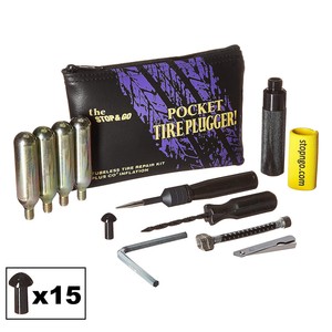 Blackburn PRO PLUGGER Tire Repair Kit zestaw naprawczy UST ... from bikecenter.pl The item was added to your cart. The plug expands under pressure to fill. Flexible adapter with solid brass fittings for the most effective repair possible without dismounting your tubeless tire; Canisters of co² gas and a 4 flexible adapter with solid brass fittings for the most effective repair possible without dismounting your tubeless tire; Stop and go int'l tubeless pocket tire plugger 1000 tires repair kits & inflatio. It repairs punctures from the inside/out! Safety experts recommend that punctured and/or plugged motorcycle tires should be replaced as soon as possible. Contents of the pocket plugger: